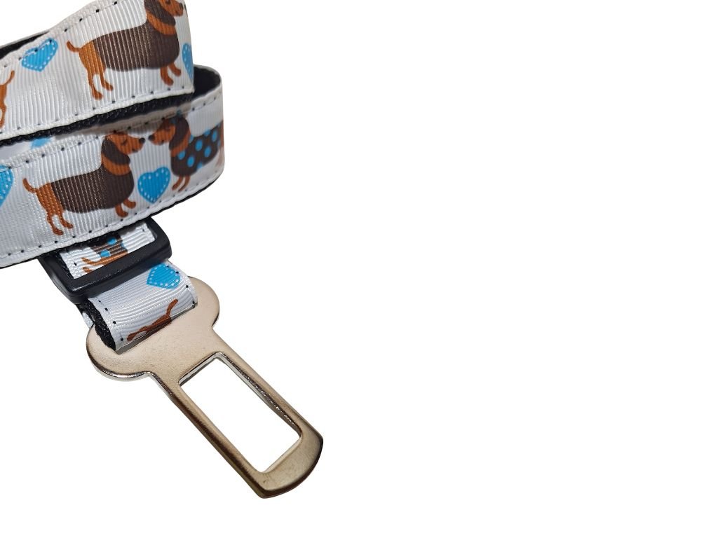 Autopás se snadno připne kovovou karabinou k postroji psa a druhý konec zapnete do zásuvky bezpečnostního pásu ve vašem autě.