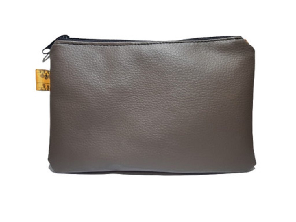 - Zadní strana: je vyrobena z hnědé koženky, která dodává kapsičce moderní vzhled, ale také zajišťuje větší odolnost a snadnou údržbu.