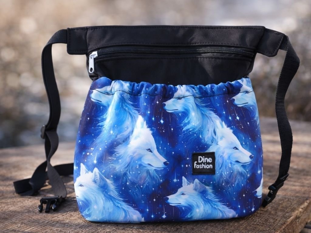 🔹 Zapínání: zip u horní kapsy, elastický lem u kapsy na pamlsky.