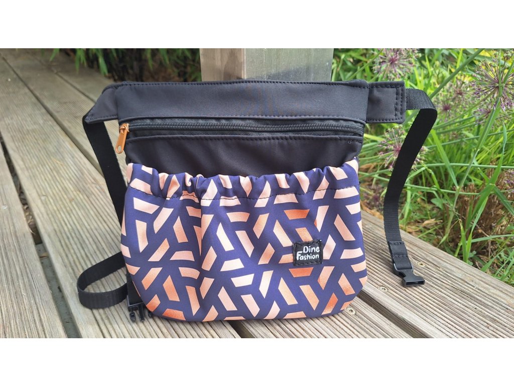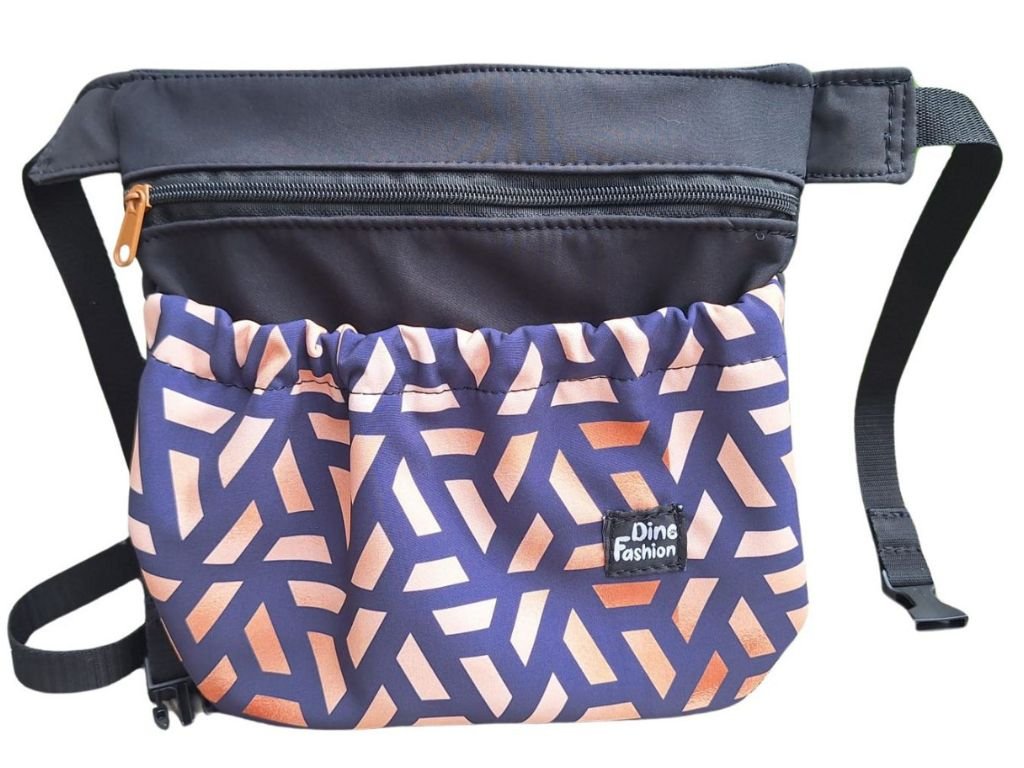 🔹 Zapínání: zip u horní kapsy, elastický lem u kapsy na pamlsky.