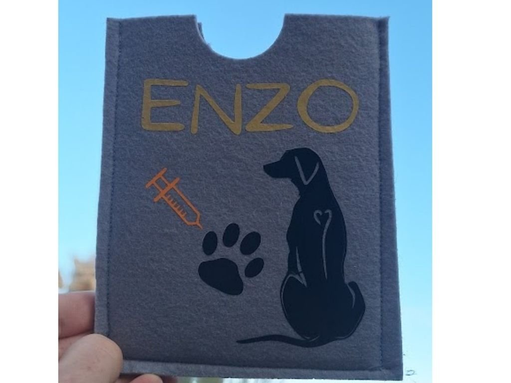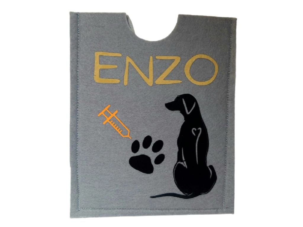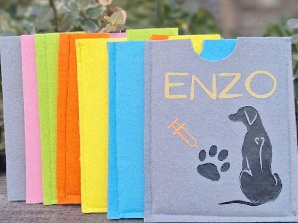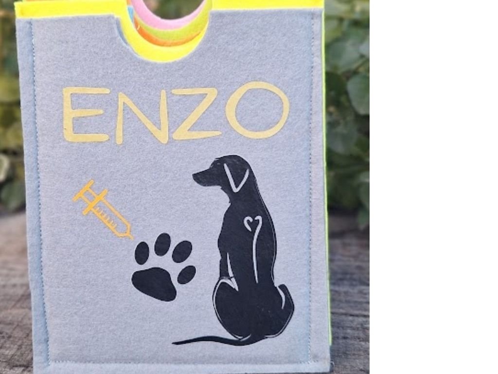 Hledáte originální a funkční ochranu pro očkovací průkaz Vašeho pejska? Obal na očkovací průkaz Dinofashion je vyroben z kvalitního pevného filcu, díky čemuž spolehlivě chrání dokument před poškozením, ohýbáním a nečistotami. Každý obal je navíc personalizovaný – se jménem Vašeho psa a motivem plemene dle výběru, takže se z něj stane nejen praktická pomůcka, ale i stylový doplněk.