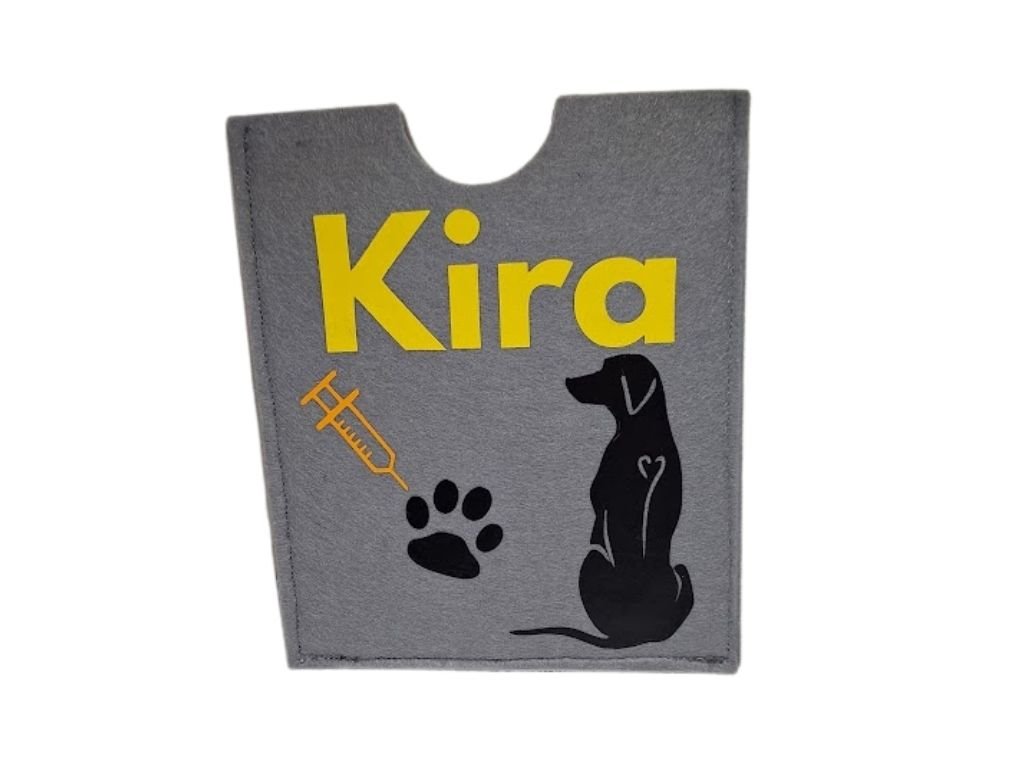 Hledáte originální a funkční ochranu pro očkovací průkaz Vašeho pejska? Obal na očkovací průkaz Dinofashion je vyroben z kvalitního pevného filcu, díky čemuž spolehlivě chrání dokument před poškozením, ohýbáním a nečistotami. Každý obal je navíc personalizovaný – se jménem Vašeho psa a motivem plemene dle výběru, takže se z něj stane nejen praktická pomůcka, ale i stylový doplněk.