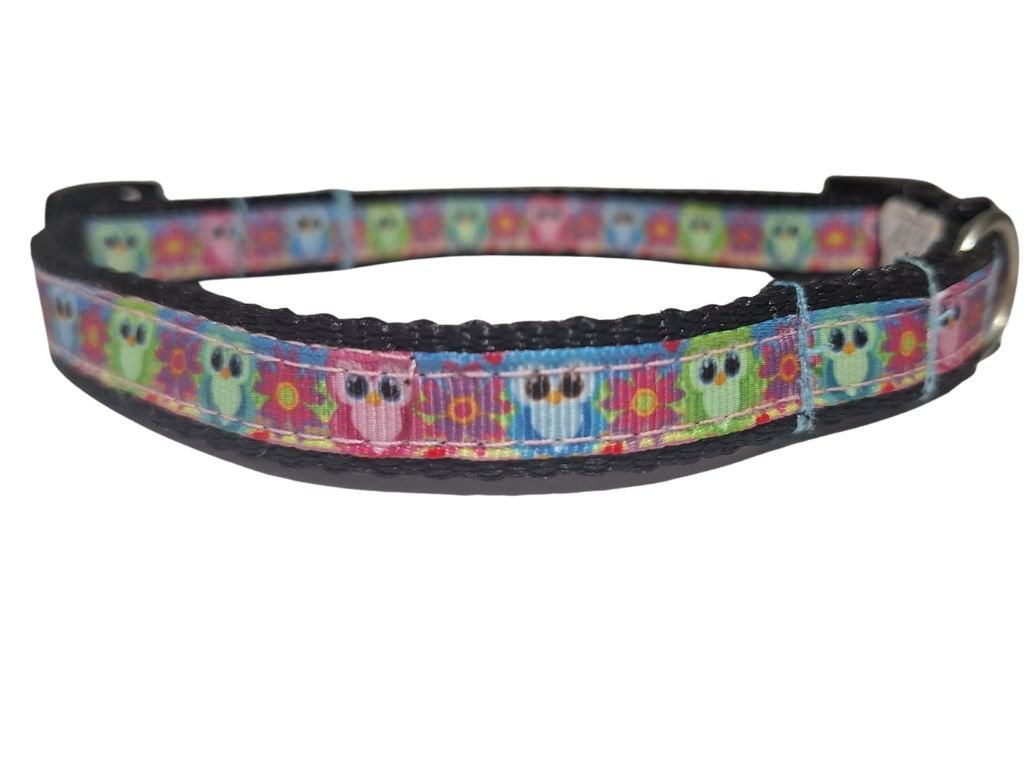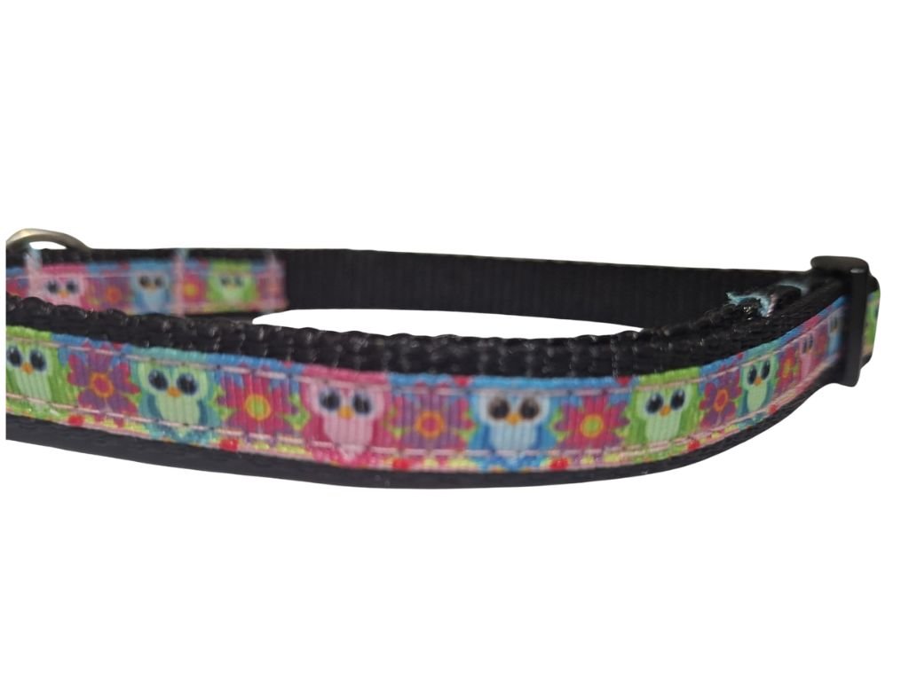 Rozveselte venčení s veselým obojkem z dílny Dinofashion! Tento ručně šitý obojek pro malé psy spojuje kvalitu, pohodlí a hravý design, který si zamilujete vy i váš mazlíček. Základem je pevný černý popruh, na který je našita dekorativní stuha s barevnými sovičkami – originální kombinace, která rozzáří každou procházku.