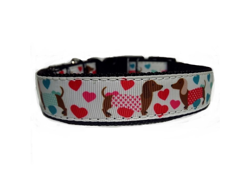 Stylový obojek s motivem jezevčíka – ručně šitý v Česku