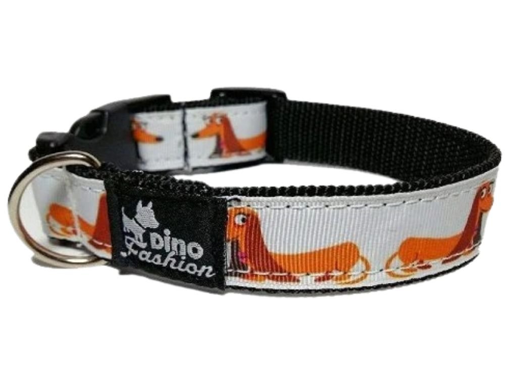 Hledáte obojek, který dokonale vystihne kouzlo jezevčíků? Obojek Dinofashion Slečna jezevčík je tu pro všechny milovníky těchto roztomilých dlouhánů. Ručně šitý v Česku, pohodlný a originální – ideální volba, která udělá radost vám i vašemu pejskovi.