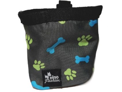 - Stylový obojek Dinofashion. Základ tvoří pevný popruh pošitý černým softshellem s pestrou stuhou.