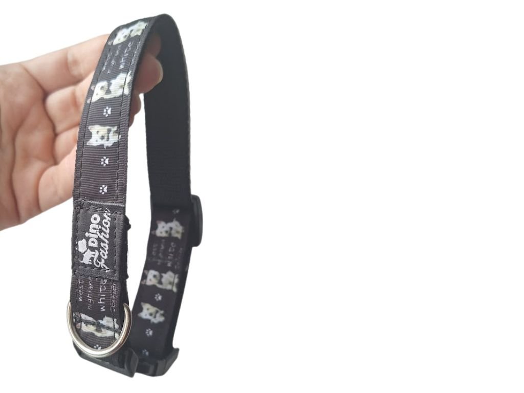 Stylový obojek s motivem Westíka – ručně šitý v Česku