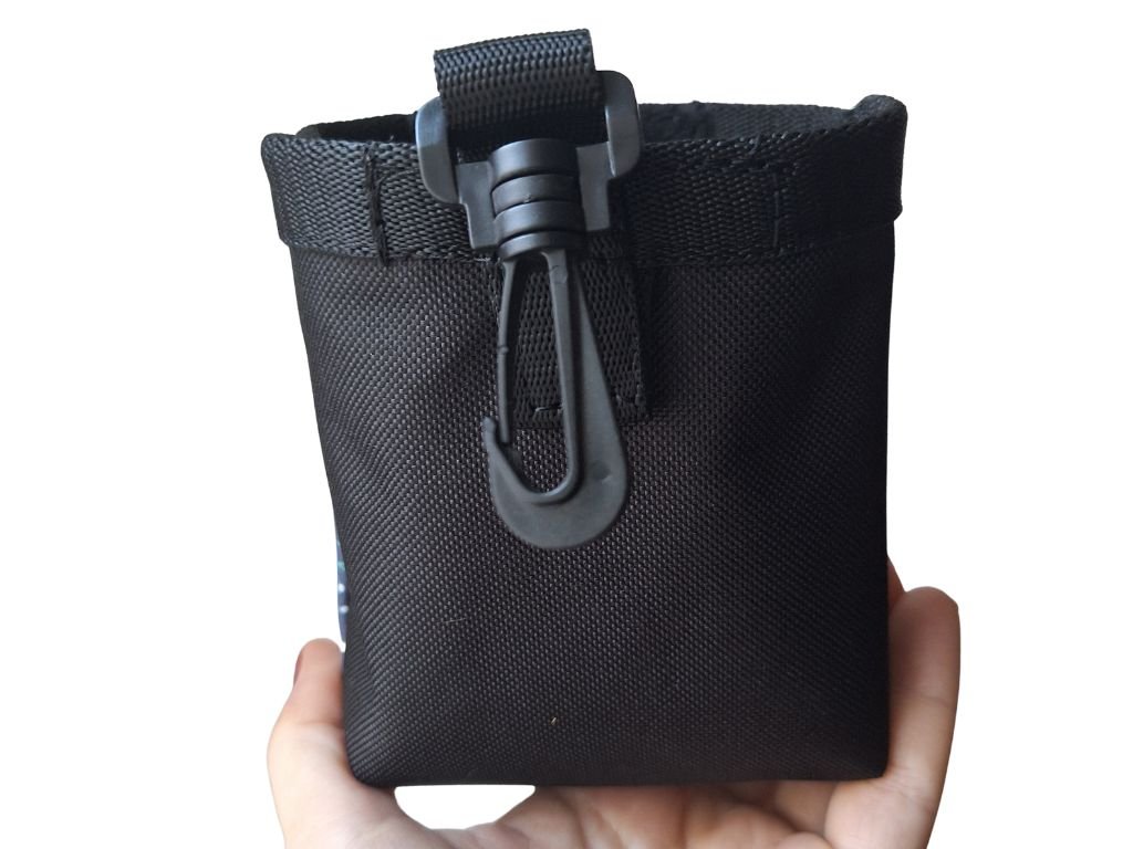 - Praktické uchycení: Na zadní straně najdete pevnou karabinu, díky které pamlskovník připevníte na poutko kalhot nebo opasek – budete mít pamlsky vždy po ruce.