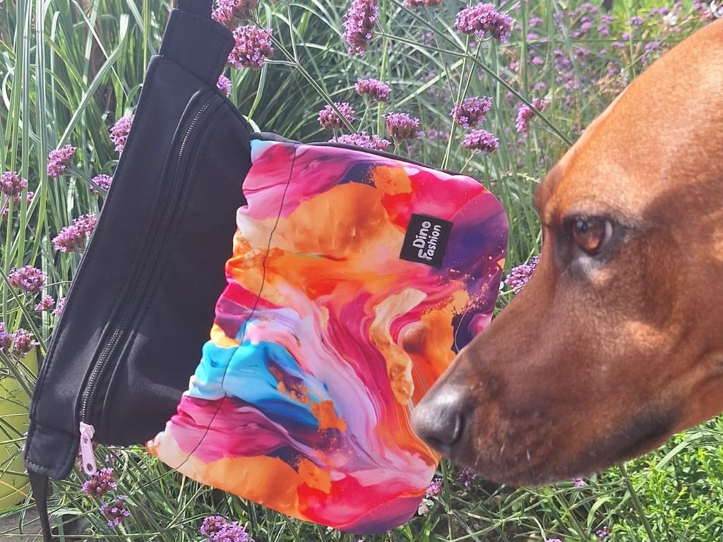 Její hravý letní design v jasných barvách rozzáří každý váš společný výlet, a přitom je tak praktická! Rychlý přístup k pamlskům, místo na mobil, klíče i sáčky na exkrementy – to vše máte vždy pohodlně u sebe, aniž by vás něco omezovalo. Nastavitelný popruh kolem pasu zajišťuje volnost pohybu a maximální komfort.