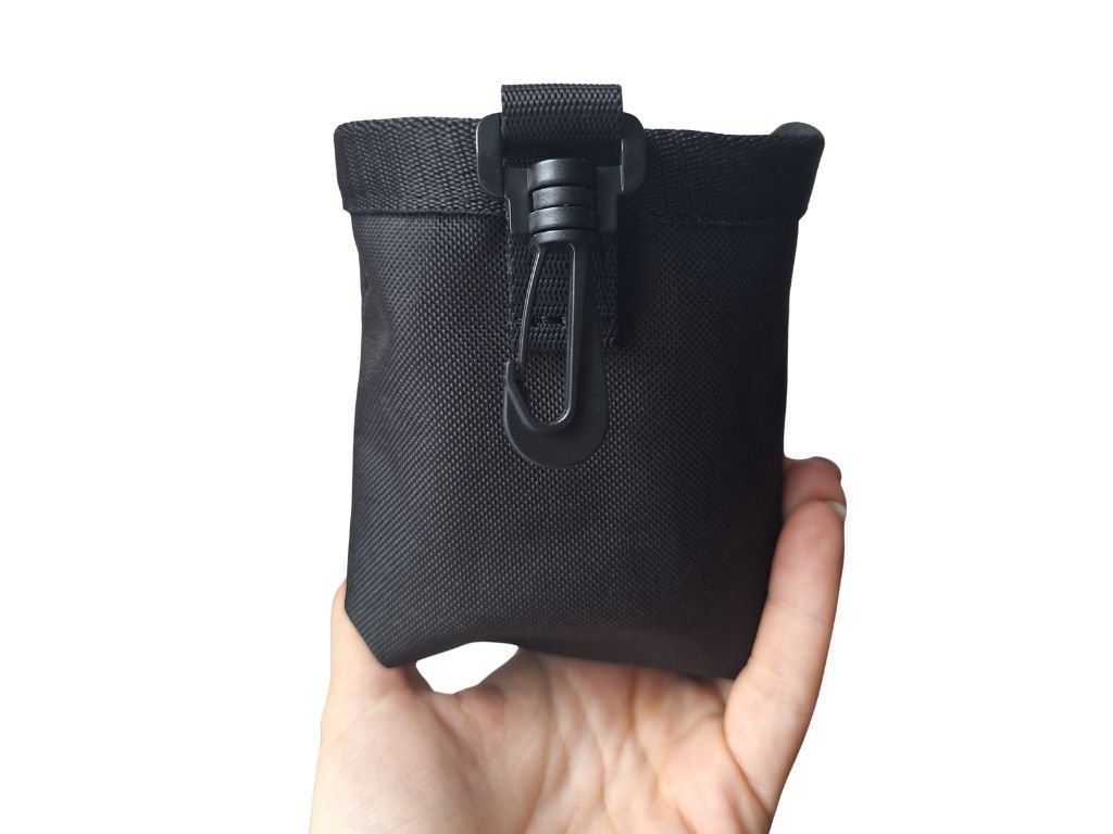 - Praktické uchycení: Na zadní straně najdete pevnou karabinu, díky které pamlskovník připevníte na poutko kalhot nebo opasek – budete mít pamlsky vždy po ruce.