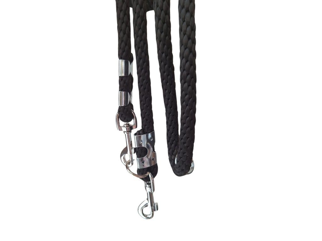 Naše černé přepínací vodítko o průměru 14 mm je navrženo pro situace, kdy se na výbavu potřebujete 100% spolehnout. Zapomeňte na zařezávání tenkých popruhů – lano spletené z 18 pramenů je měkké k vašim rukám, ale nekompromisně pevné k síle psa.