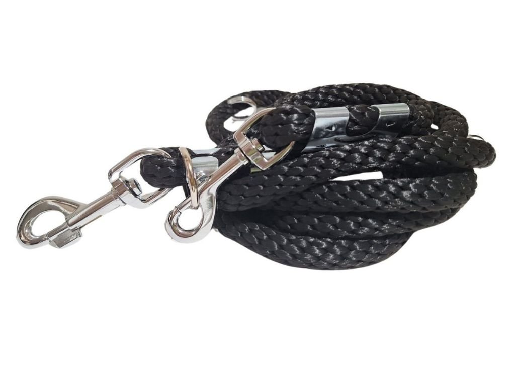Díky poctivému průměru lana (14 mm) a robustním bezpečnostním karabinám je toto vodítko dimenzováno pro sílu velkých psů. I když je materiál lana sám o sobě lehký, celková konstrukce s masivními kovovými prvky je navržena tak, aby poskytovala maximální jistotu majitelům středních a velkých plemen.