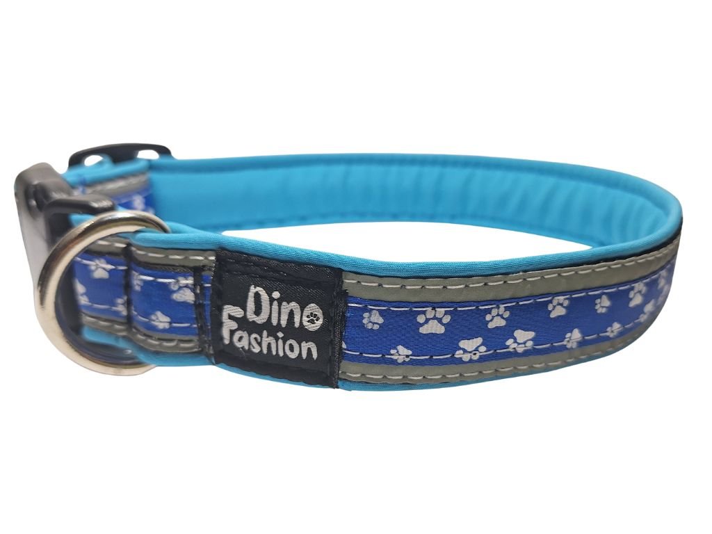 Reflexní obojek Dinofashion modrý Tlapky