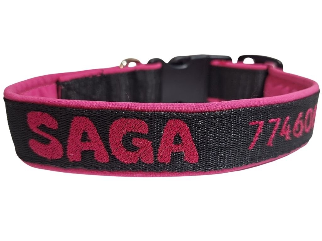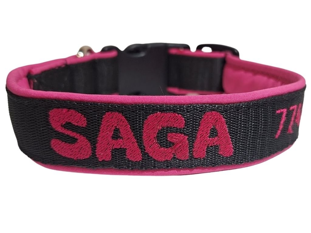 Obojek s vyšitým jménem a telefonním číslem v růžové barvě je perfektní volbou pro majitele, kteří chtějí spojit bezpečnost, pohodlí a originální design. Díky výšivce jména a telefonního čísla na přání se váš pejsek jen tak neztratí a vy budete mít klid na každé procházce.