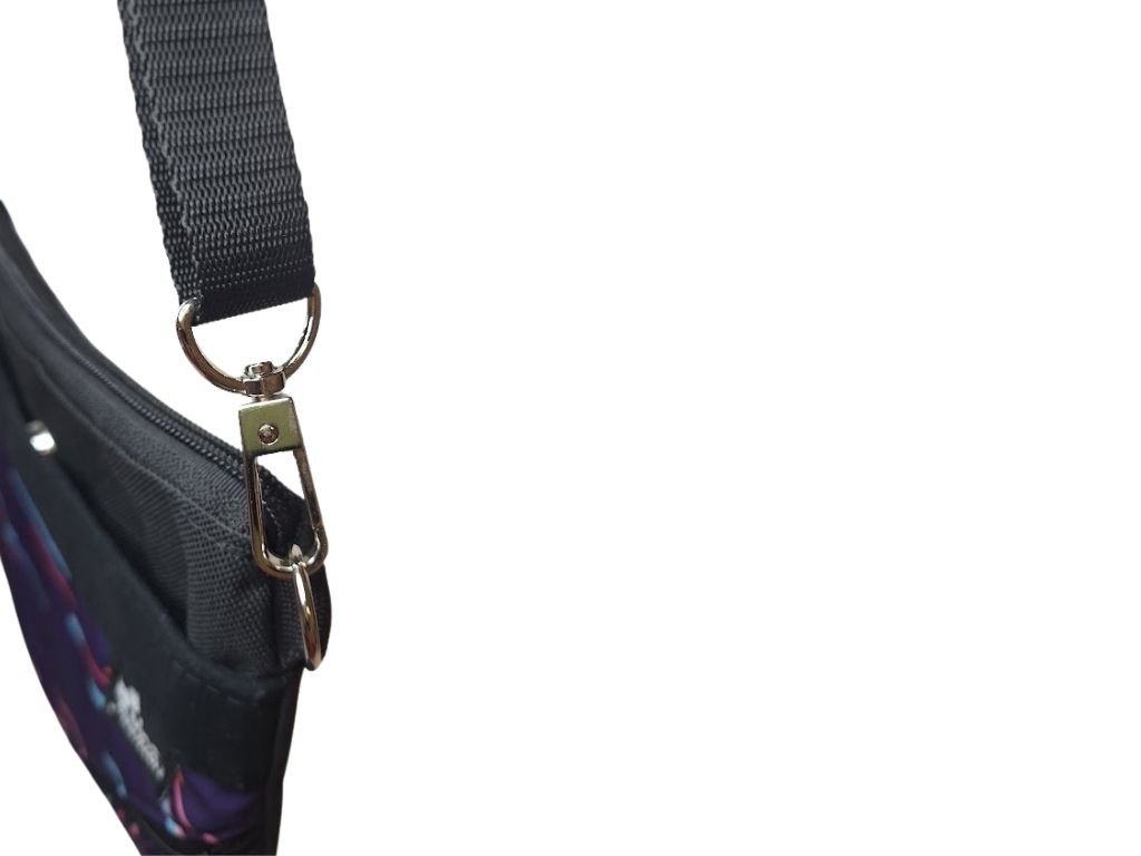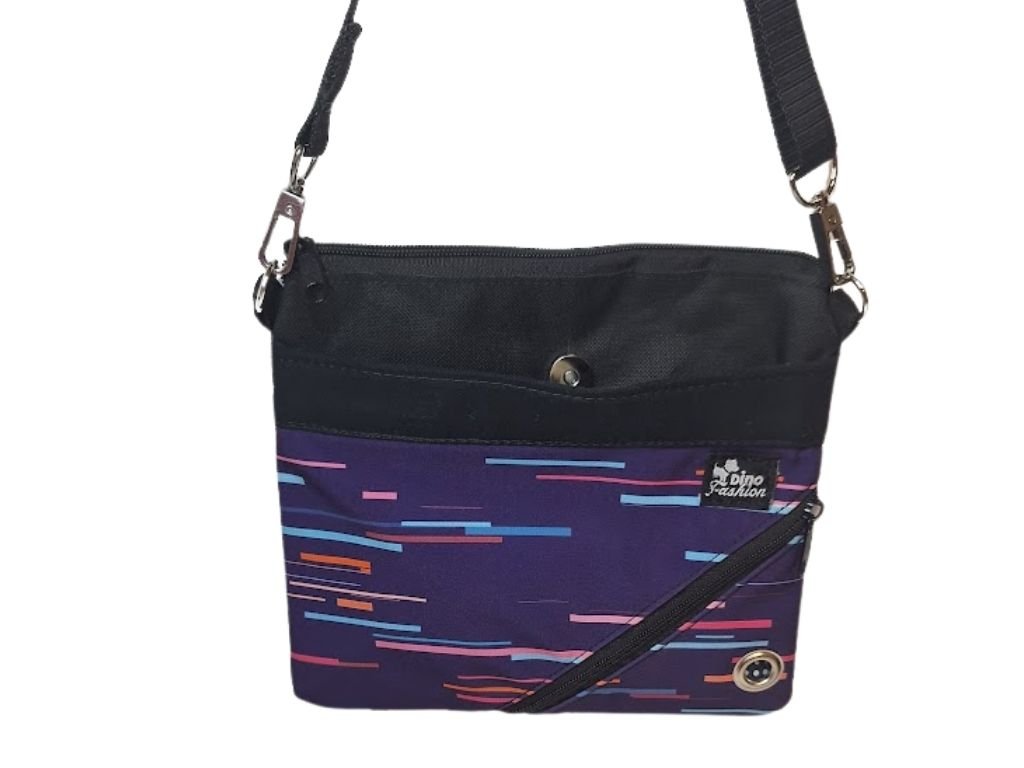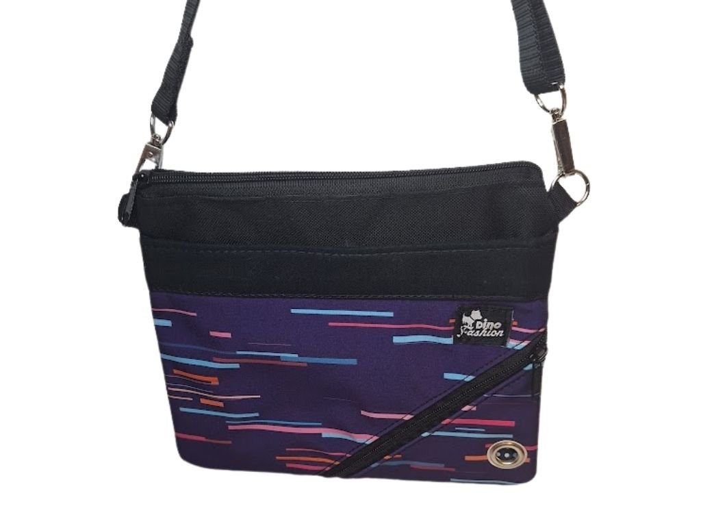 Praktická taška typu crossbody ve fialové barvě se zajímavým motivem, která se hodí na procházky s pejskem. Rozměry 22 cm x 21 cm. Vnější kapsa na magnet 22 cm x 17 cm. Ušita z pevné látky na průmyslovém šicím stroji. Taška je uzavíratelná na zip, uvnitř je podšívka. Vpravo dole je umístěn zásobník na WC sáčky. Rolička sáčků se položí dovnitř kapsy a sáček se provleče spodním kroužkem. Vhodný pro běžné roličky WC sáčků, které jsou k dostání ve zverimexech. K dostání obojek se stejným motivem viz kategorie Obojky softshell 3 cm.Buďte první, kdo napíše příspěvek k této položce.